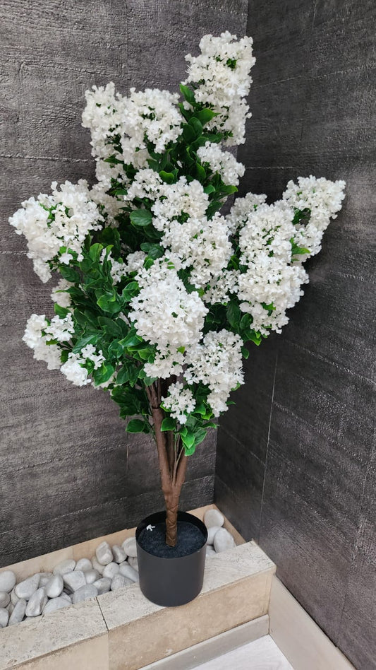 Artificial Lilac White Plant in black pot UV-resistant for Outdoor Decor 47 In.